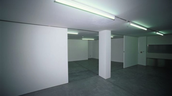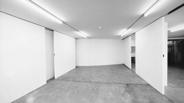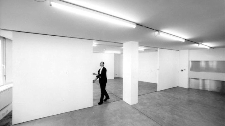 Generali-Foundation, 1991. 1. OG | A | Galerieraum im dritten Stock eines Bürohauses. Verschiebbare Trennwände, Farbe: weiss. Es stand ein Raum zur Verfügung, in dem ausziehbare Schiebewände vorhanden waren. Der Eingriff bestand darin, zwei dieser Wände der vorderen Ebene relativ beliebig in den Raum zu schieben und dann jene drei Schiebewände, die normalerweise die Rückwand des Raumes bilden, so zu verschieben, dass der dahinter befindliche Stapelraum teilweise sichtbar wurde. Der Besucher konnte nun seinerseite ebenfalls die Wände verschieben. Es ging dem Künstler mit diesem Werk nicht um die Reflexion des leeren Ausstellungsraumes oder die Zurschaustellung von Leere war; denn der Raum war alles andere als leer, es befanden sich nur im Gegensatz zu seiner üblichen Verwendung keine Kunstobjekte in ihm. Im selben Jahr realisiert der Künstler mehrere ähnliche Arbeiten (in der Wiener Galerie Metropol im Kunstmuseum Luzern und in der Kunsthalle Insbruck), die die Grenze zwischen Kunstwerk und Kunstwahrnehmung aufheben, indem an den Ausstellungen nichts ausser dem Ort der Ausstellung selbst gezeigt wird, wobei der Künstler jeweils nur minimale Eingriffe und Manipulationen an der bestehenden Architektur und Infrastruktur vornimmt. | |