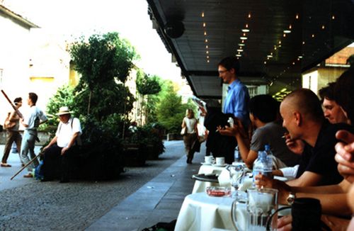 The Motion Picture (aka Film), 2000. 2. OG | A | Für das Werk Film hat Althamer 10 Schauspieler angeheuert, auf einem öffentlichen Platz vor einem Einkaufszentrum während zwei Wochen alltäglichen Handlungen durchzuführen. Wer von den Zuschauern nicht wusste, dass es sich um eine Performance handelte, konnte nicht sagen, ob er das Kunstwerk überhaupt gesehen hatte. Das Projekt wurde an der Manifesta in Ljubljana durchgeführt. Die Aktionen waren banal und unauffällig; synchronisiert, aber unzusammenhängend: ein junges Paar, das sich küsst, ein Junge, der Skateboard fährt, ein alter Mann, der Tauben füttert, ein junger Mann, der an einem Tisch sitzt und Café trinkt. Selbst ein eingeweihtes Kunstpublikum hätte Mühe gehabt zu entscheiden, was zum Kunstwerk gehört und was nicht, und hätte wohl sehr viele Handlungen zum Kunstwerk gezählt, die vom Künstler nicht so vorgesehen wurden. Bei einigen Passant haben die Szenen vielleicht ein Déjà-vu-Gefühl erzeugt, aber mit Sicherheit konnte niemand sagen, woran das lag, bis der Film am Abend endete und alle Schauspieler gleichzeitig ihre Rollen aufgaben und weggingen. Eine (selbst)ironische Subversion des avantgardistischen Traums, Kunst und Leben nahtlos zu verschmelzen, aber dies nur während der Arbeitszeit. | |