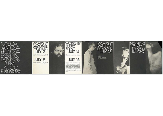 | Nichts von Ray Johnson Das erste "Nothing by Ray Johnson"-Performance fand im Rahmen der wöchentlichen Veranstaltungsreihe Musica Antiqua et Nova (mit Werken von La Monte Young, Henry Flynt und Walter De Maria) im Juli 1961 im AG statt, einem Lokal in New York, das von George Maciunas und Almus Salcius betrieben wurde, und wo gerade die erste Einzelausstellung von Yoko Ono zu sehen war. Bei der Nothing-Performance von Ray Johnson betraten die Besucher einen leeren Raum, in dem nichts los war ... Als Ray erschien, brachte er eine grosse Kartonbox, in dem sich hölzerne Spulen befanden. Ray leerte sie Box die Treppe hinunter und die Besucher mussten aufpassen, dass sie nicht auf den Spulen ausrutschten und sich das Genick brachen. "[The gallery] was empty except for some bags of plaster and some stacks of lumber and wall boards … and we stood or sat around on these supplies while visitors began to enter the premises. Most of them looked quite dismayed that nothing was going on… when those who arrived and wanted to know what was happening we all spoke up and said “Nothing.” Well, finally Ray arrived. He hadn’t been there up to this point, and he brought with him a large corrugated cardboard box of wooden spools which he probably picked up from the discard junk of a factory in Soho. Soon after arriving Ray emptied this box of spools down the staircase that led to the gallery. Thus with these wooden spools, about eight or ten inches long, covering the steps one had to step cautiously to avoid slipping down the staircase and possibly breaking one’s neck." (1) | |