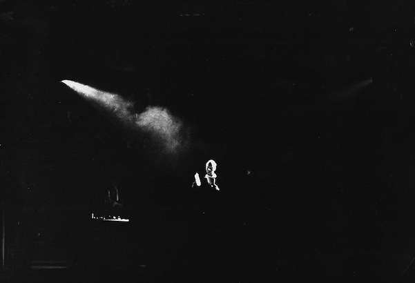 | Zweites Nichts Von der zweiten Nothing-Performance, die im Maidman Playhouse in New York stattfand, gibt es keine Beschreibungen – nur die Fotos, die zeigen, wie Johnson in einem dunklen Raum steht, angeleuchtet von einem Scheinwerfer. Dafür ist ein schreibmaschinengeschriebenes Papier überliefert, das eine Art Performancescript darstellt, obwohl die "Anweisungen" alles andere als klar sind: Second Nothing 1. Dear Cora Baron, Joseph Cornell has bangs. Bang, bang. 2. Dear Gloria Graves, When it rains, it pours. I have a hat for you. 3. Dear Malka Safro, Smoke in bed. 4. Dear Alison Higgins, Advertisements for Myself and Alison Higgins paintings. | |
