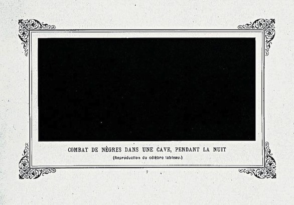 Combat de nègres dans une cave, pendant la nuit (Kampf der Neger in einem Keller in der Nacht), 1897. UG | B | Es handelt sich um eine Reproduktion des Bildes Combat de nègres dans un tunnel von Paul Bilhaud, das 1882 im Salon des Incohérents in Paris gezeigt wurde. Publiziert im Album primo-avrilesque, Paris 1897. 1 Seite, 12 ×18.5 cm