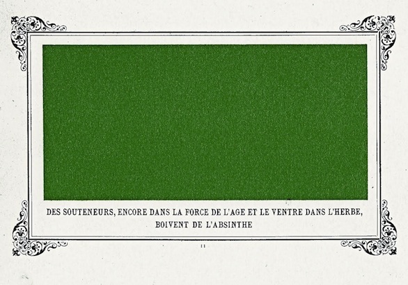 Des souteneurs, encore dans la force de l'âge, le ventre dans l'herbe, buvant de l'absinthe (Zuhälter, noch im besten Alter und den Bauch im Gras, Absinth trinkend), 1897. UG | B | Publiziert im Album primo-avrilesque, Paris 1897. Paris 1897. 1 Seite, 12×18.5 cm