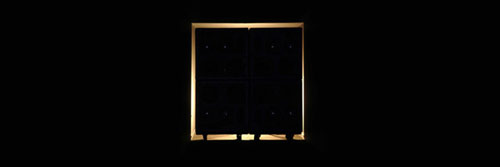 The black passage, 2006. 2nd | A | Purpose-built tunnel, CD player, speakers, amplifier, assorted wires, halogen light, black velvet curtaining, audio. Dimensions: 20 x 2 x 2 m. Duration: 11 min. 11 sec. A sound recording of an empty elevator cage descending into and ascending out of the South Deep mine, the deepest twin-shaft goldmine in the world. This was broadcast from a wall of speakers installed at the end of a narrow 20 m long black tunnel. Visitors enter the long, but confined, space and are drawn towards a frame of golden light emitted from a location behind the speakers at the end of the tunnel. The sound is diffused at high volume and can be experienced as both an auditory and a physical sensation. The scenography of the black speakers framed with light is a reference to Kazimir Malevich’s Black Square.