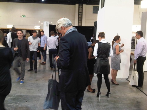 (1) Intervention View: FNB Joburg Art Fair. Tate Modern director, Chris Dercon, looking for phone signal. Photo: Anthea Buys.