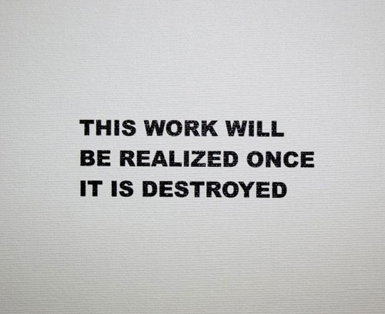 This work will be realized once it is destroyed, 2011. BF | A | Black adhesive vinyl lettering on wall | |