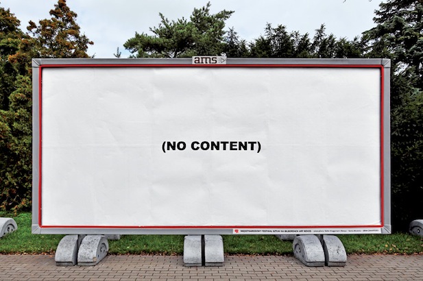 (No Content), 2004. BF | A | Black vinyl lettering on billboard. | |