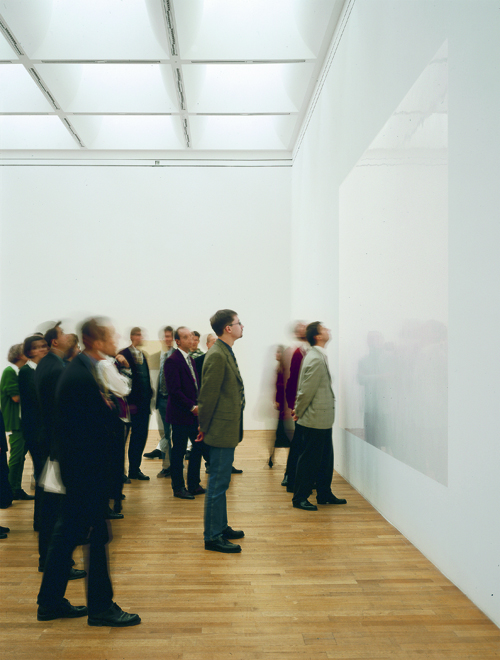GF | A | Wall paint on canvas, 5 x 12 x 12m. Karin Sander used the wall covering of the showrooms to produce panels. These were primed with a white color and then sewn together in the dimensions of the walls. Finally, they were attached to a wooden frame and hung in the showroom. (1)