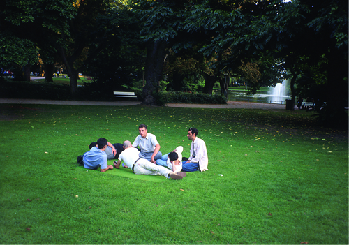 5 Kunstrasenstücke (5 artificial turf piece), 1997. 2nd | A | Artificial turf, foam, 200 x 200 cm, inserted in a meadow. (9) | ||