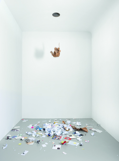 2nd | A | Paper waste from 5 offices of the Neuer Berliner Kunstverein, 5 holes in the bottom of the offices respectively the ceiling of the exhibition space, Holes each Ø 30 cm. (12) | ||