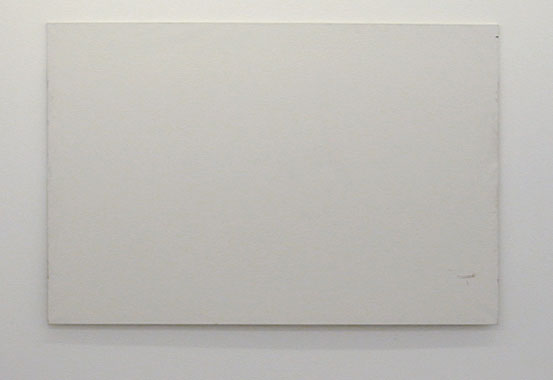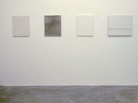 Gebrauchsbilder (Patina Paintings), 2005. GF | A | The Patina Paintings, called Gebrauchsbilder in German (the term implies both that the canvases are consumer objects and that they fulfill a need) were created in the locations where they were hung. The primed image carriers were taken, without prior manipulation, to a selected location and remained exhibited there for a period of time to be determined later. They absorbed and reproduced the specific patina of a given location. This process of absorption can continue infinitely or be interrupted at some point. The duration, the name of the location, and size determined a given painting, and provided its title. (6) | ||