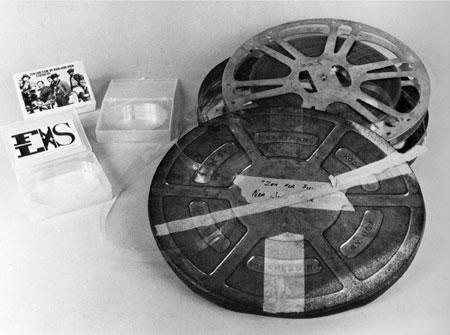 Zen for film (Fluxfilm n°1), 1964. GF | A | Silent Movie, 8 min, black/white. In an endless loop, an unexposed 16 mm film reel runs through the projector. It is a film that only shows itself and its material textures. In the projected image, bright light is visible, along with the tiny scratches and dust particles that pile up as artifacts of the projection on each pass. Everything else is left to the mind of the beholder. Watch the film HERE | |