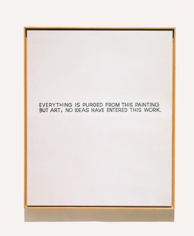 De esta pintura se ha expurgado todo salvo el arte, ninguna idea participa en esta obra, 1966. SO | A | Título original: Everything is purged from this painting but art, no ideas have entered this work. Pintura, 150 x 103 cm (Se puede ver aquí) | |